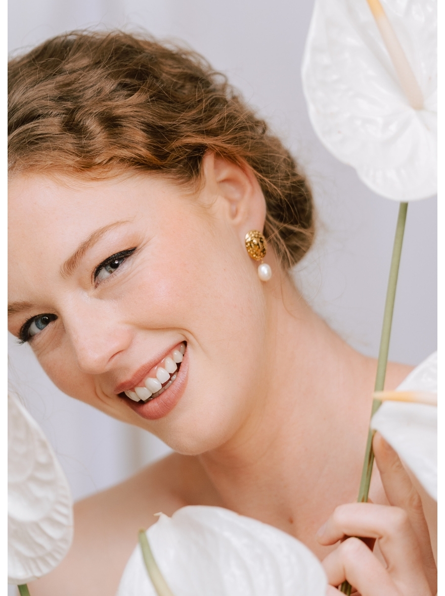 Des boucles d'oreilles de mariée avec perles d'eau douce au charme moderne à porter le jour de votre mariage et à reporter au quotidien.