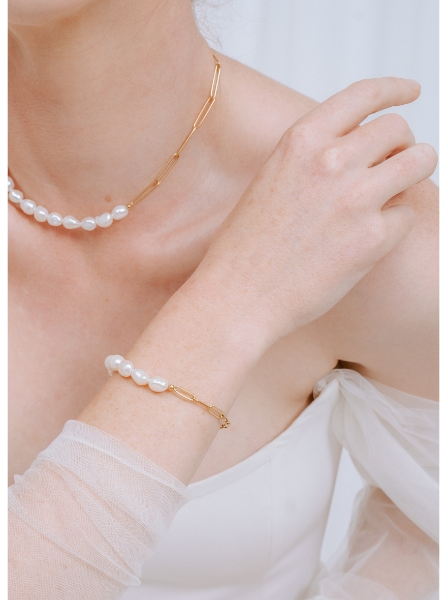Bracelet mariage "Andrea" chaine moderne avec perle eau douce