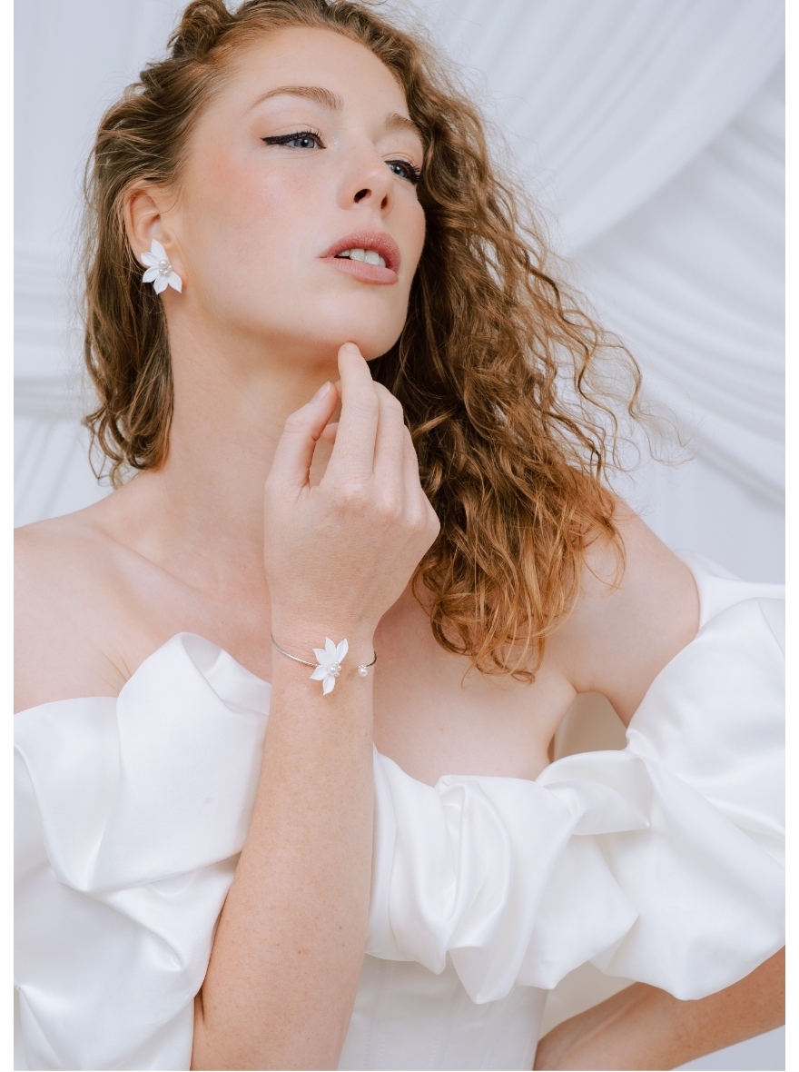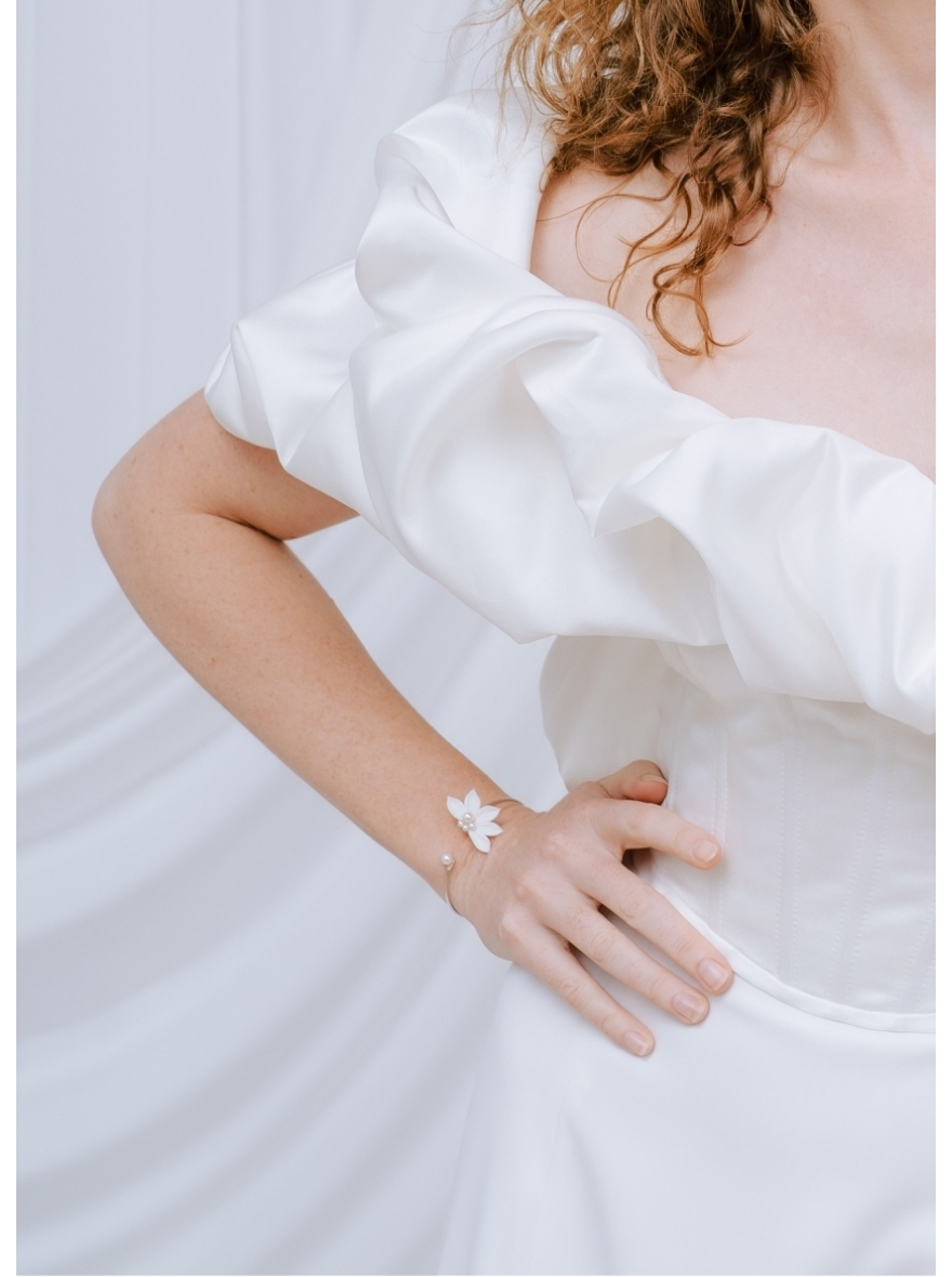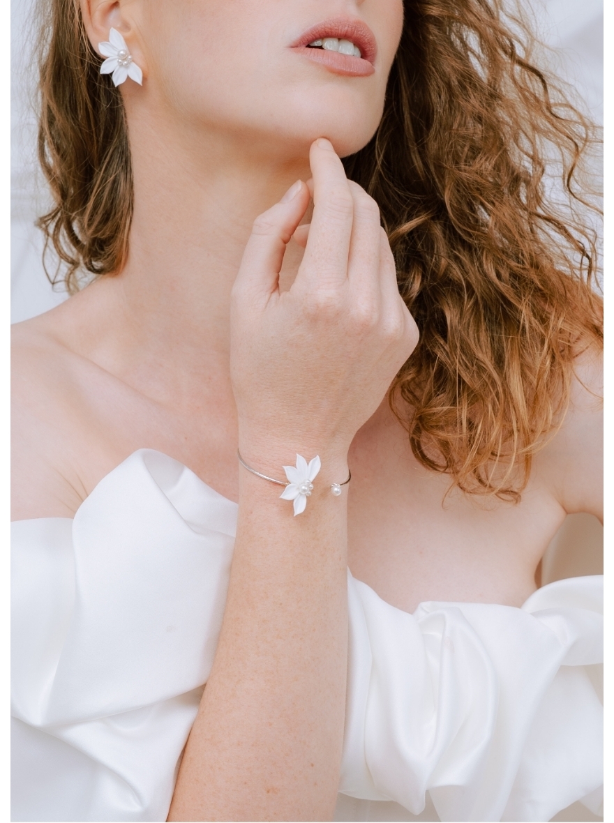 Bracelet mariage "Livia" jonc avec fleurs porcelaines