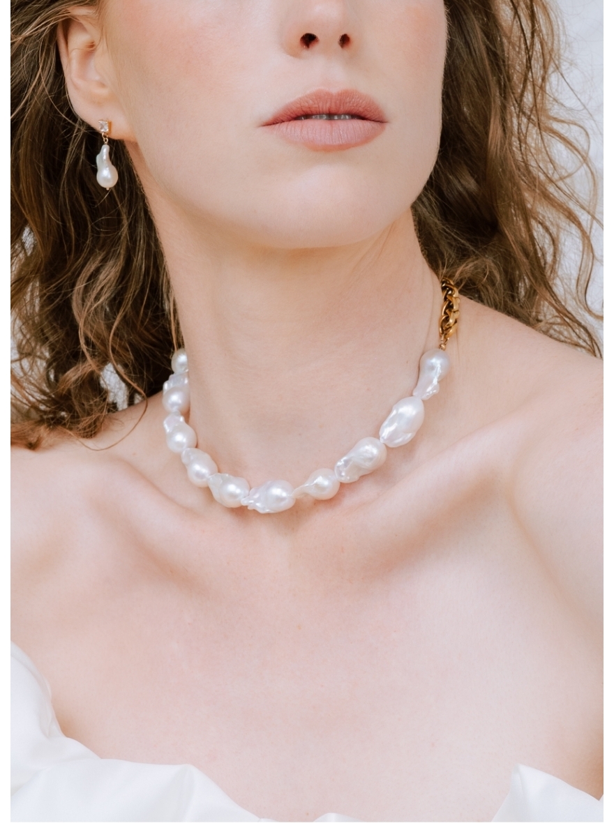 "Brune" Collier mariage choker moderne avec perles d'eau douce baroques