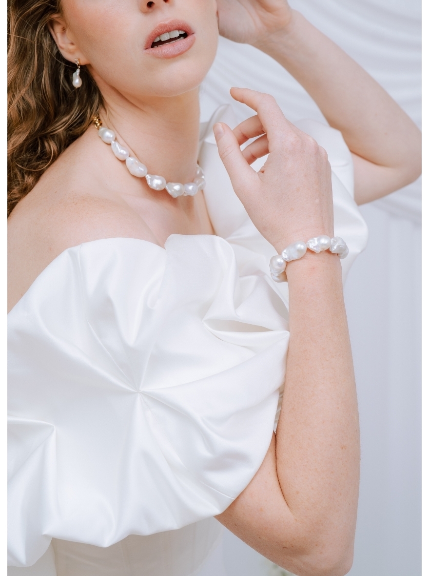 Un collier élégant et résolument moderne à porter pour accessoiriser une tenue de mariée moderne et à reporter en toutes occasions.