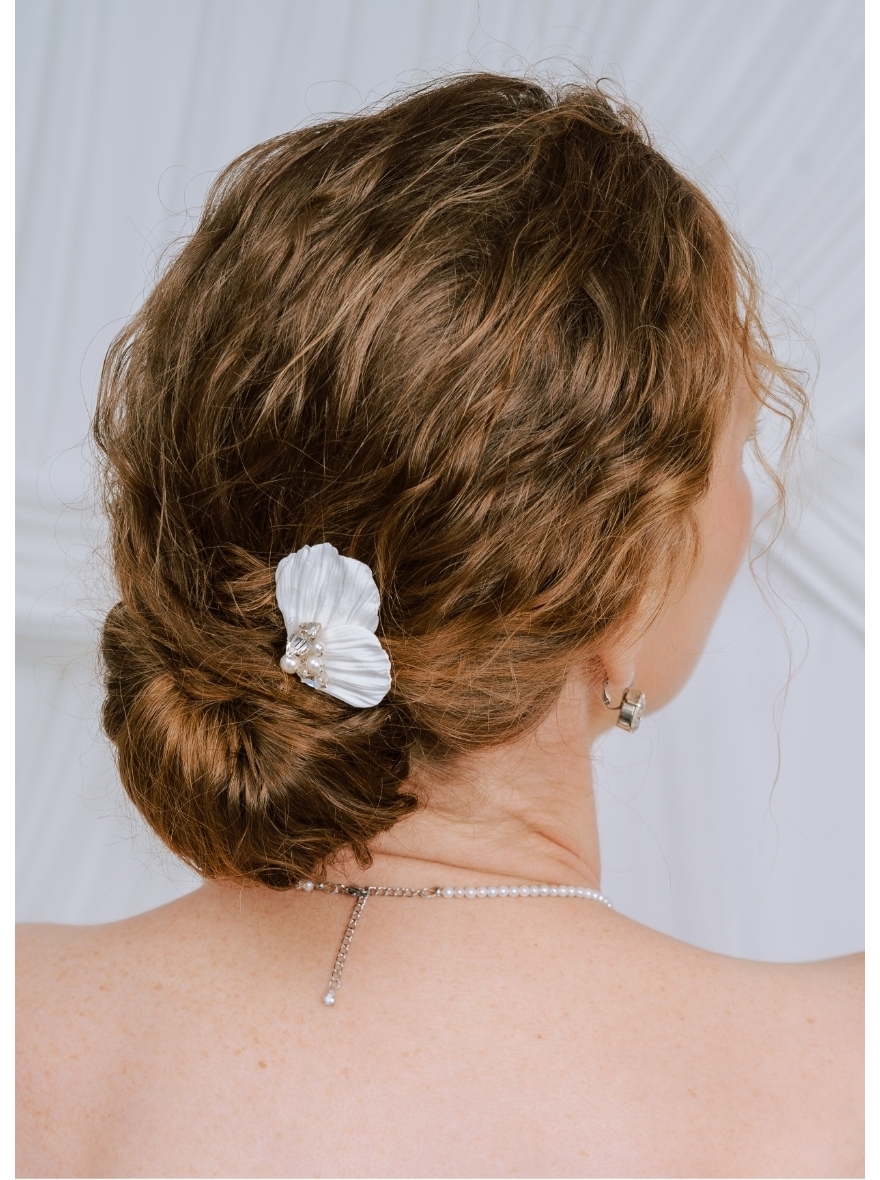 "Mathilde" pic à chignon avec cristaux et pétales blanc pour votre coiffure de mariée